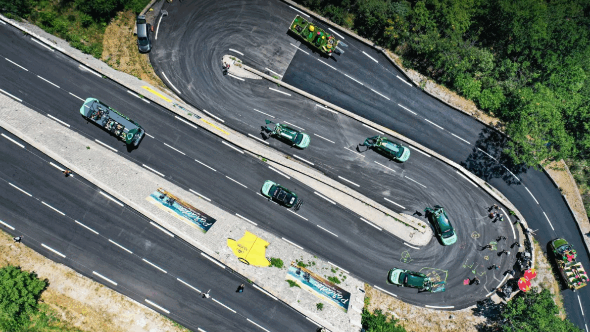 Ensuite, les distributeurs et les animateurs de toutes les caravanes s’attachent avec les harnais, puis partent pour l’étape. Une fois la parade terminée, Clara remplit de nouveau les véhicules, pour le lendemain, avec tous les produits Cochonou.