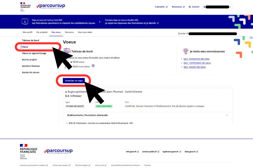 2) Cliquez sur la rubrique “Voeux” et sélectionnez “Formuler un voeu”