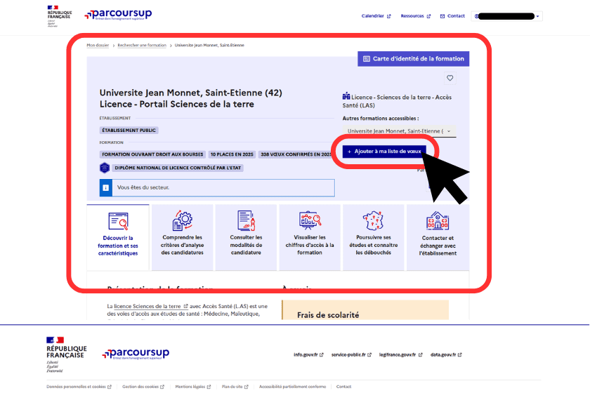 5) Validez votre voeu en cliquant sur le bouton “+ Ajouter à ma liste de voeux”