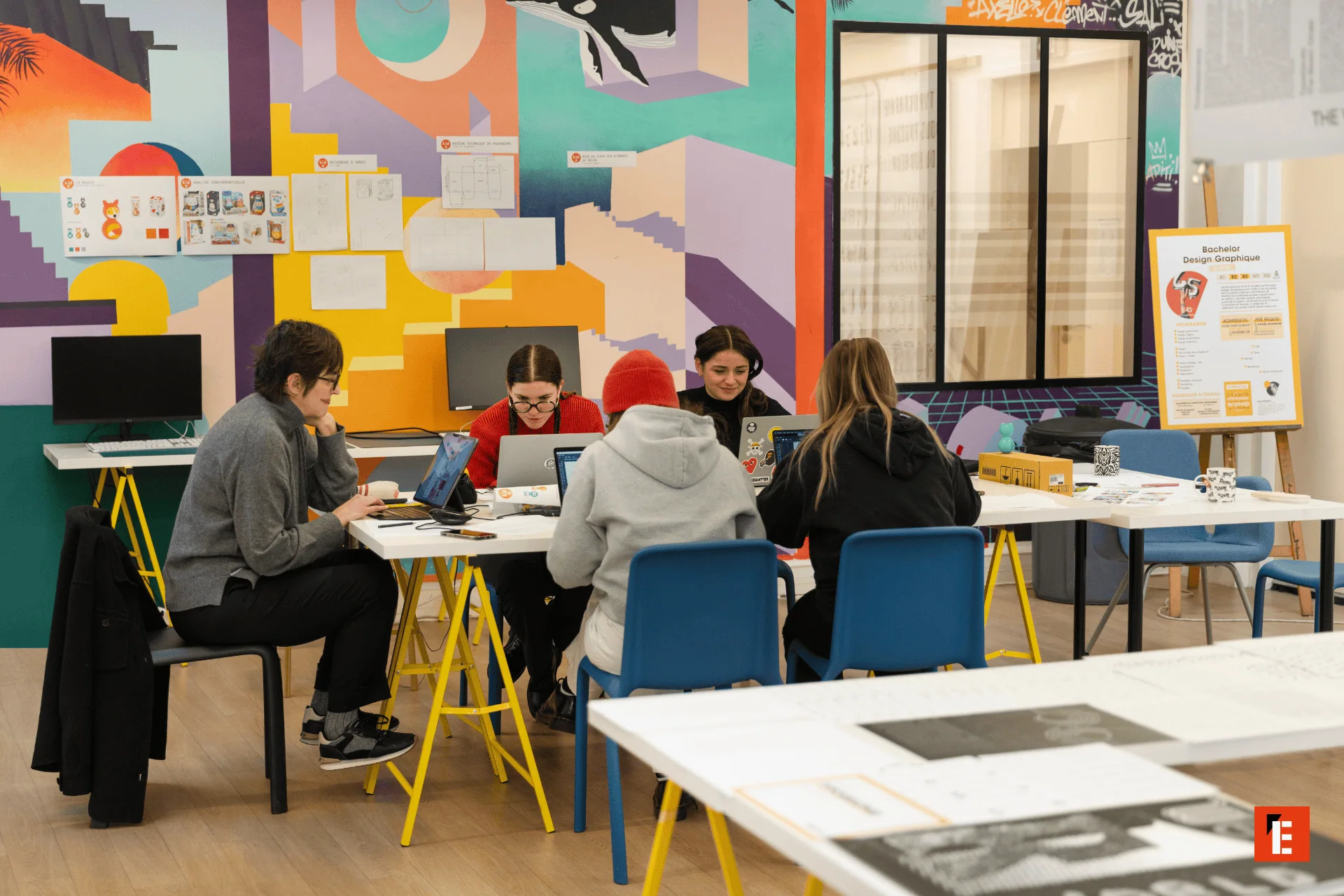 Les 2ᵉ et 3ᵉ années approfondissent les compétences en graphisme, identité visuelle, publicité, digital et communication visuelle, à travers des projets concrets et professionnalisants.