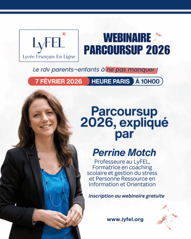 LyFEL, établissement d’enseignement français en ligne, accompagne les élèves du primaire au baccalauréat, sous le contrôle de l’Académie de Bordeaux. Notre mission ? Offrir un complément de scolarité français flexible et unique.